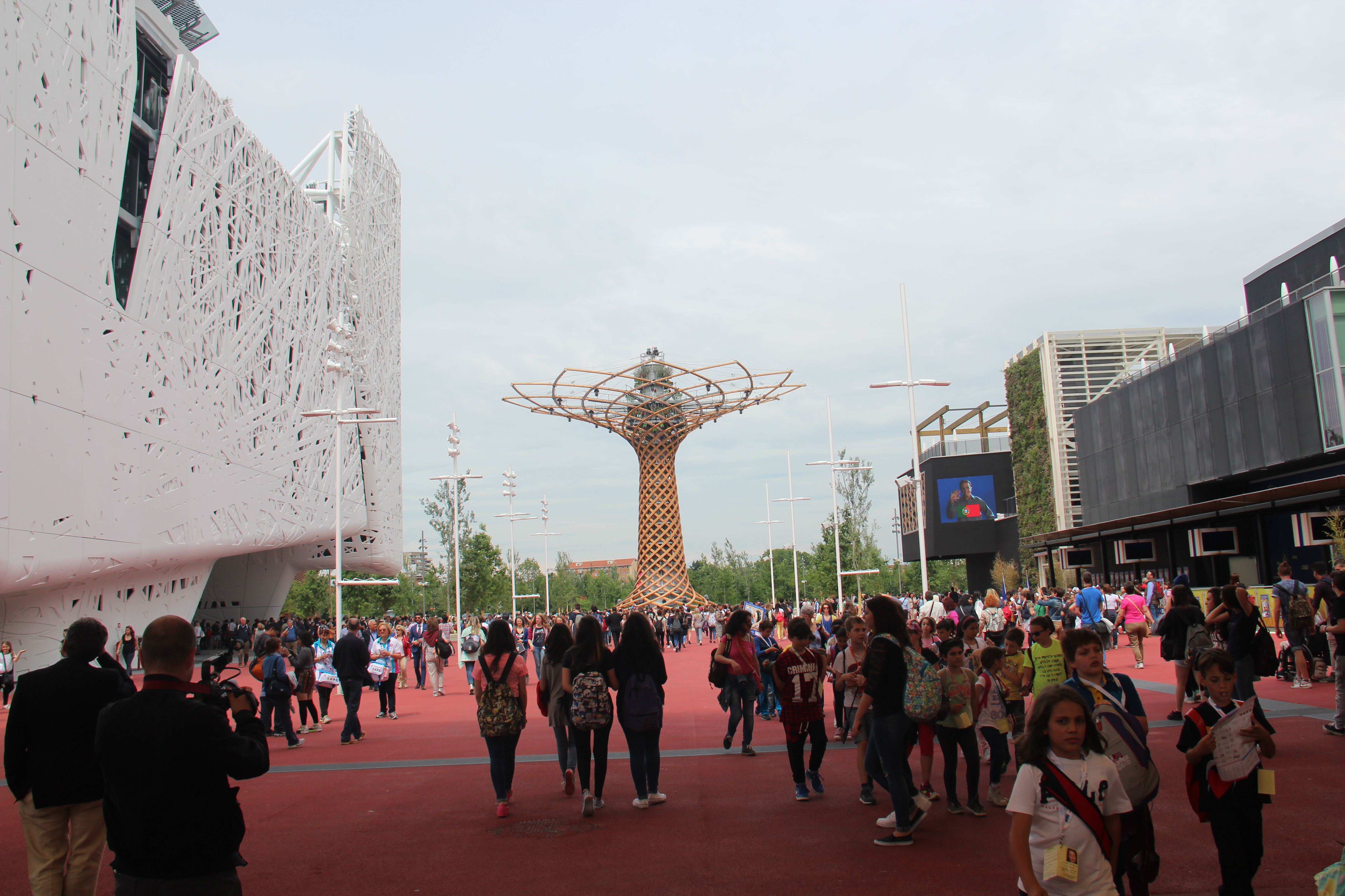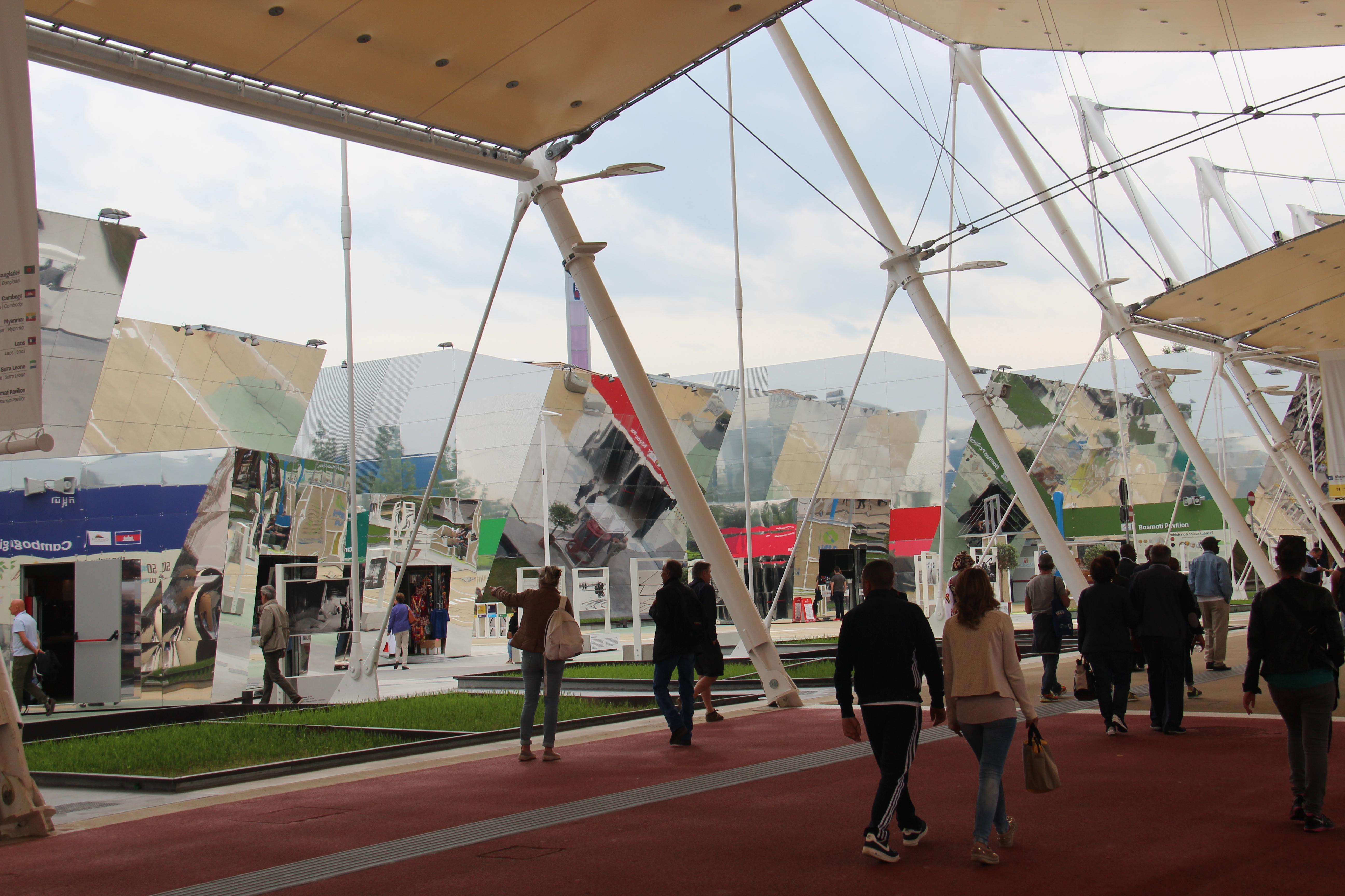 Milan is hosting the 2015 World EXPO with the theme of “Feeding the Planet, Energy for Life”.The intent is “to showcase the most advanced technologies and innovations for a sustainable future”. There is a huge focus on nutrition and food production. The site is composed of approximately 250 acres on the western outskirts of Milan. There are more than 130 participating countries and 50 of them built their own custom designed pavilions that are designed to showcase the architecture and/or character of the individual country. The basic layout of the place is that of a very wide main avenue which is approximately 150 feet wide. The overall length I estimate at 4 football fields. The countries pavilions and other activity spaces are all aligned along the main avenue.